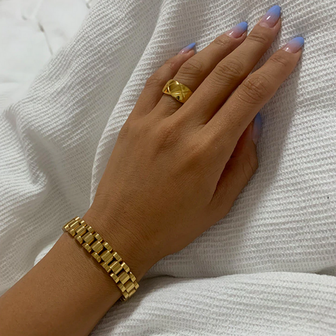 This everyday wristband chain is a striking piece, the subtle gold chain is a confident cult classic. This is a customer favorite when we sell at markets. A perfect gift for you and your man!